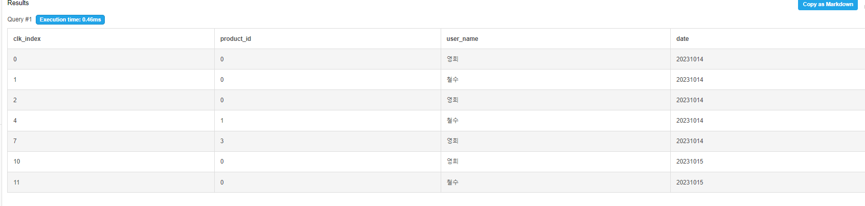 clicks 테이블은 c, orders 테이블은 o로 호칭을 붙임