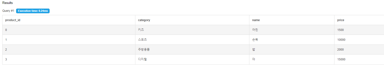 예를 들어 PRODUCT_NAMES 테이블이 다음과 같다면