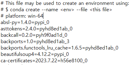 아나콘다 가상환경에서 코드를 실행하다가 설치된 라이브러리를 그대로 다른 가상환경에 옮기는 방법엔 두 가지가 있다.