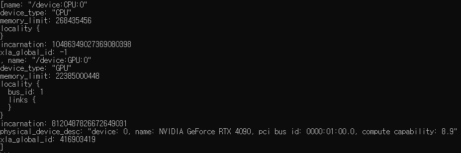 위의 명령어 실행 시 GPU까지 인식되는 것을 볼 수 있다.
